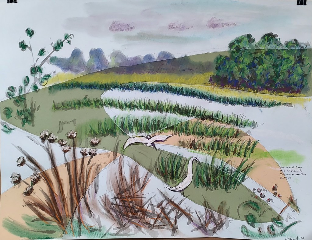 Pastel and Ink on collaged pastel paper ,2026 20×26