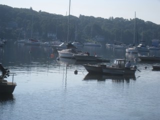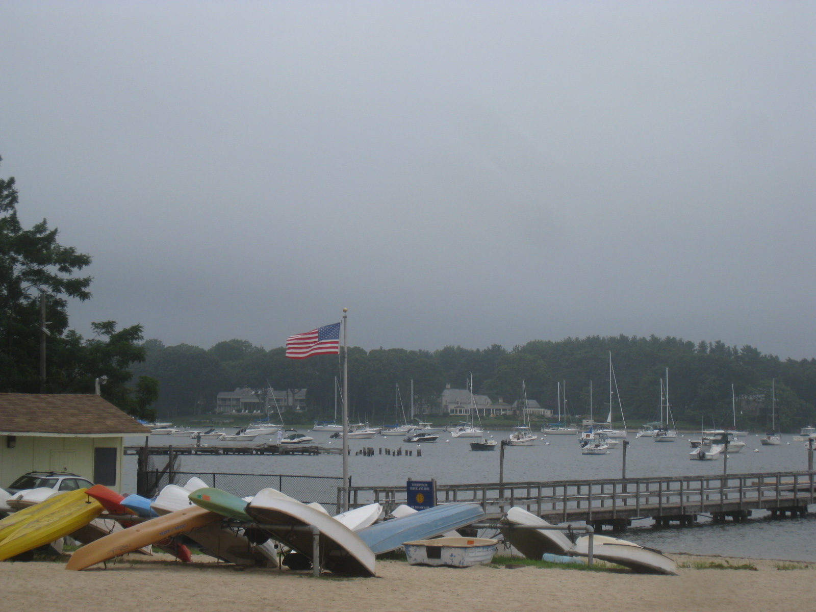 This is another outpost of the town beach, the kayaks are part of the summer kid’s program. They’re cheaper and more versatile than little sailboats, but somehow a little less picturesque in spite of their bright colors. Anyway, looked at with open mind, almost anywhere is a lovely view.