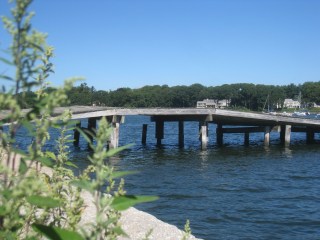 The old dock at the mansion was effectively destroyed by hurricane Sandy, when the high tides and waves were breaking over the deck so that the supports were ripped up and the piles pulled up. Nobody has gotten around to removing it yet, there are certainly not enough funds in the county budget to fix it up. Of course, the lawyers made them put up a fence with legalese signs, but that’s all ignored. Somehow, the verdant ragweed growing in front of it is completely appropriate.