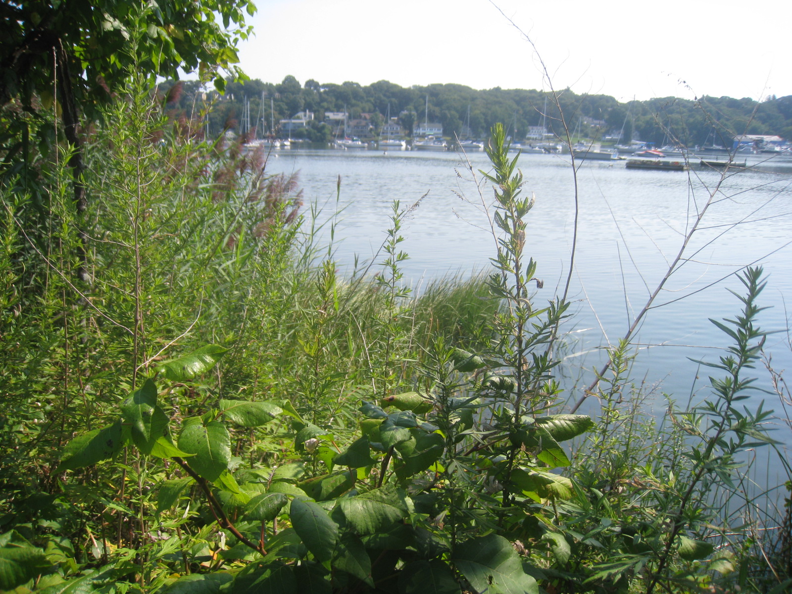 The old dock at the mansion was effectively destroyed by hurricane Sandy, when the high tides and waves were breaking over the deck so that the supports were ripped up and the piles pulled up. Nobody has gotten around to removing it yet, there are certainly not enough funds in the county budget to fix it up. Of course, the lawyers made them put up a fence with legalese signs, but that’s all ignored. Somehow, the verdant ragweed growing in front of it is completely appropriate.