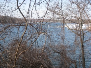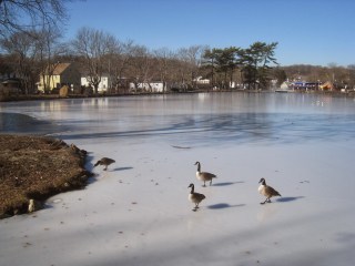 Geese are an aggravating nuisance, fouling water and grass and crowding other waterfowl. Some areas have taken to capturing or shooting and turning them into human dinners or pet food. On the other hand, they are kind of beautiful and some of the little bits of nature we get to see up close. This particular group seems to think it owns the park, as it takes a stroll on the pond ice.