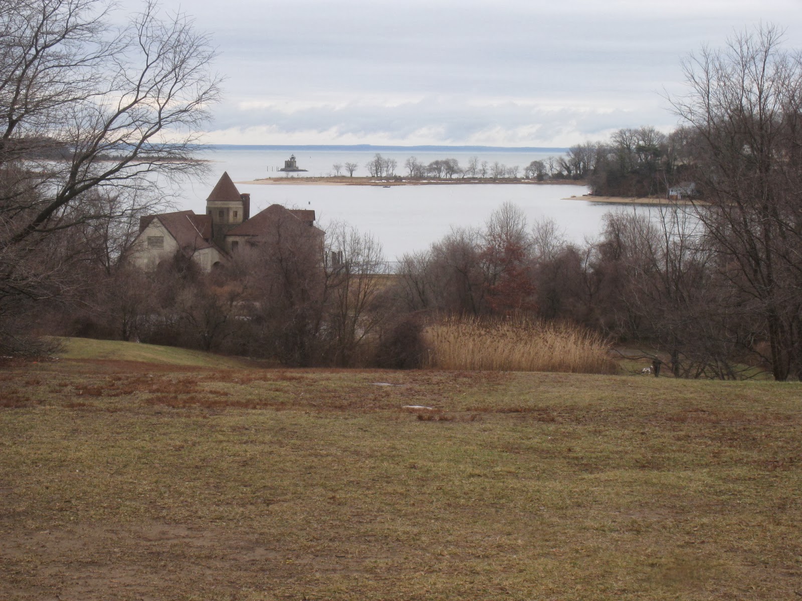 Strange little thaw leaves the turf frozen under a thin layer of mud. Signs of winter everywhere are clear enough. Looking north a kind of peach color breaks through saw-toothed clouds over the hundred-year-od lighthouse. Although the camera can’t really catch them, I love the infinite variety of soft browns in landscapes such as this.