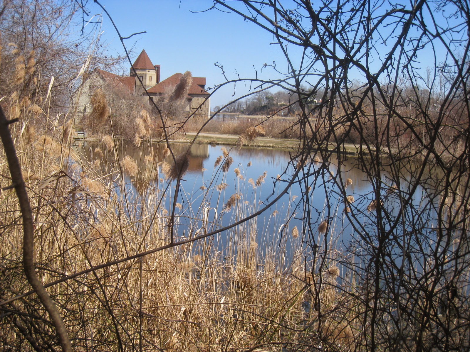 Might still look like winter, but that’s because of what mere photographs leave out. The ground is no longer frozen beneath my feet _ that’s good thick spring mud down there. Off to the left in the reeds red-winged blackbirds are screeching constantly. The wind has no bite so a lighter jacket and cap have replaced the heavier garments of March.
