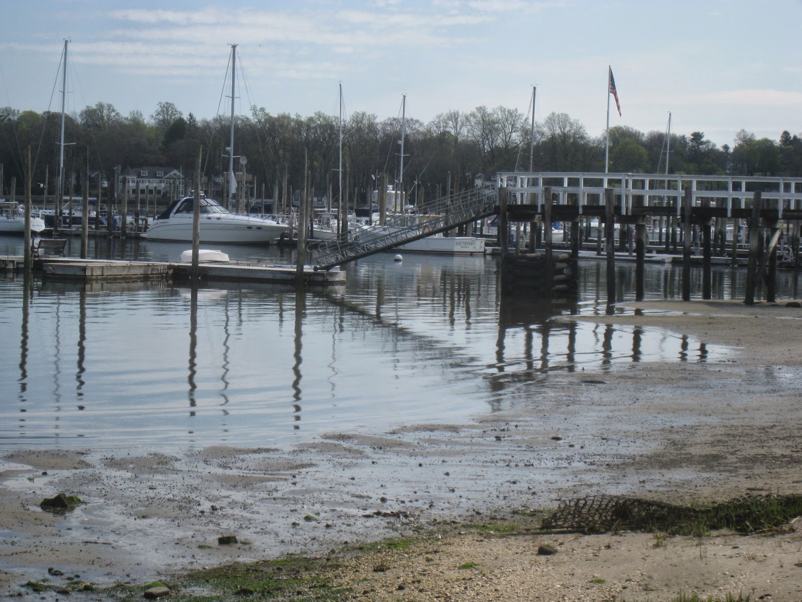Tides in the spring can be extreme _ very high, or very low, as seen here. Sometimes the docks are almost submerged, sometimes so much bottom is exposed that you half expect a tidal wave to be coming soon. This is also the first time we start to pay attention to what the winter has wrought in terms of shifting sand _ some beaches are all but gone, some deep anchorages have filled up.