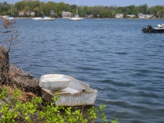 Not much to add here. Dingy ready for action. Blue waves. Boats waiting at moorings. The only additional note would be a chilled wind, which keeps the nautical action in check. Besides, it’s a weekday, and except for the clammers nobody is about to go