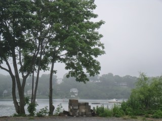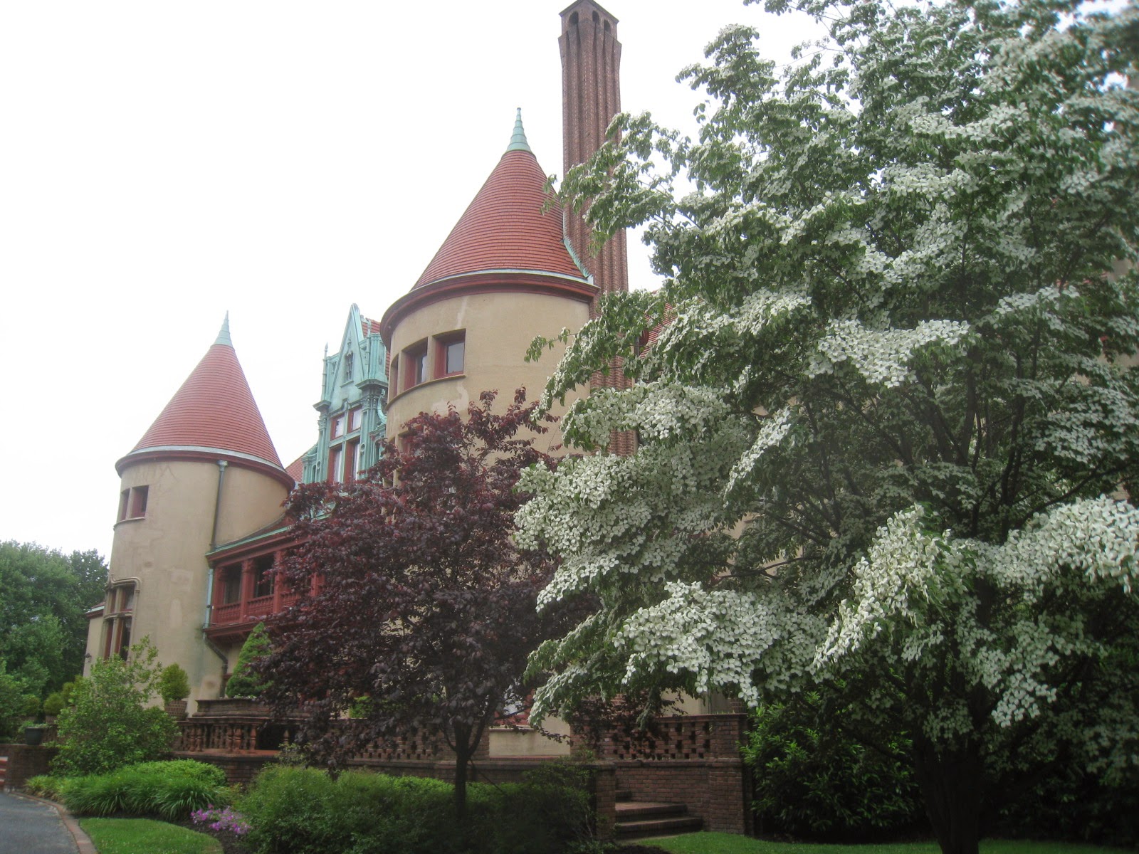 Sometimes, Coindre Hall looks like a real chateau. Of course, in France itself, many of the chateaus are less than real _ built in the twentieth century, reconstructed from absolute flattened ruin, restored in the last ten years _ so the whole notion of “real” is slippery. Anyway, here we have an out of place “grand maison” on the Gold Coast of Long Island, pretty much languishing away because the county is not sure what to do with it. But on a misty day like this, with the Korean dogwoods in bloom, it is a vision of a wider world.