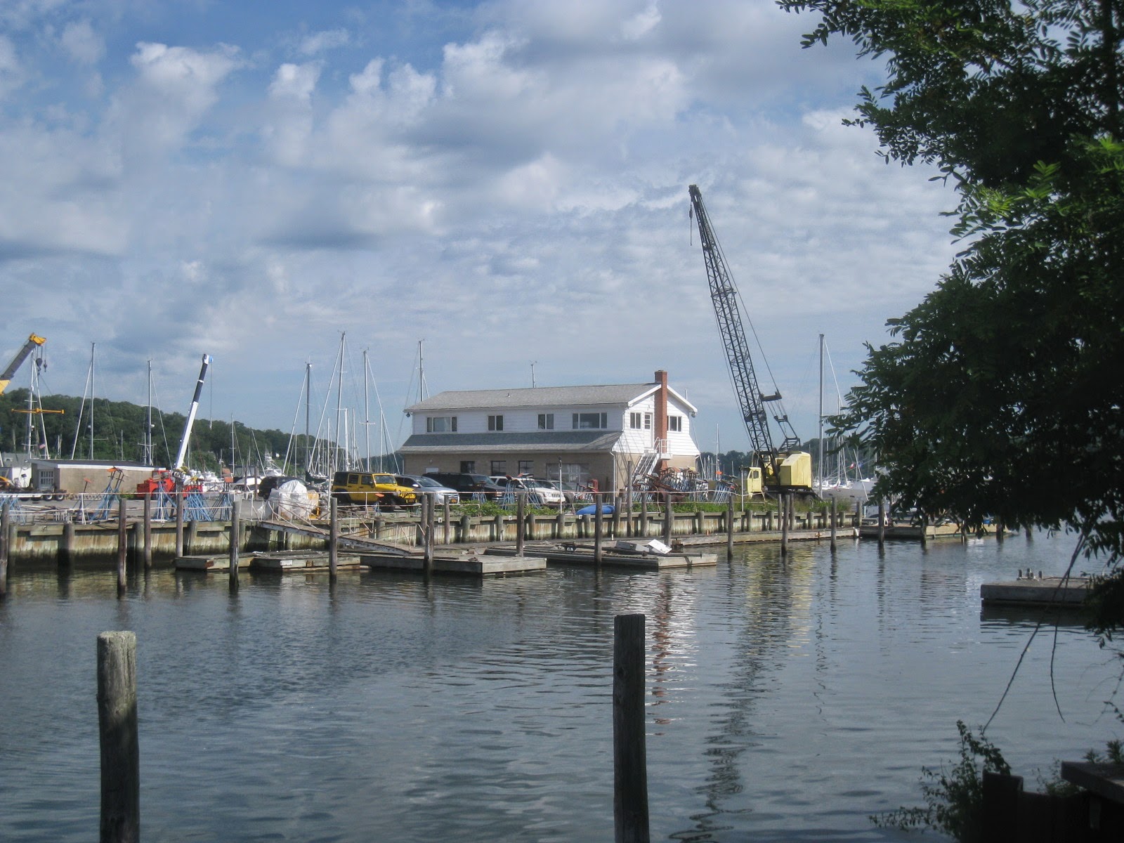 Much of the shoreline at the head of the harbor is quasi-industrial, related primarily to the recreational boat industry. Some people would find that a tragic loss of wetlands and uglification of beautiful natural views. I kind of like an occasional crane against the sky, docks and bulkheads providing reflections in the water. Scenes like this evoke more stories and imaginings than yet another seagull soaring against the clouds. At least sometimes.
