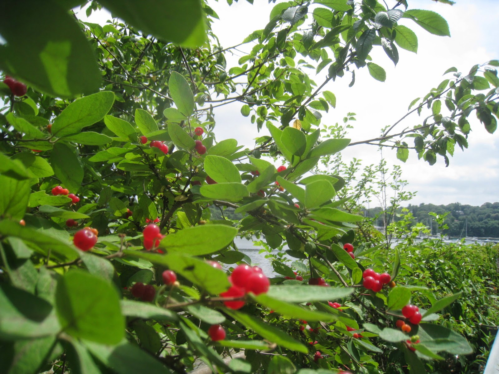 Tree and bush fruits are maturing rapidly _ I even saw some blueberries newly planted on the roadside work at Halesite. The early annual flowers are dying back a bit, and from here on it is fun to watch the different competing strategies of the various species. Some find Darwin’s theories depressing and joyless, but I find that thinking of the l