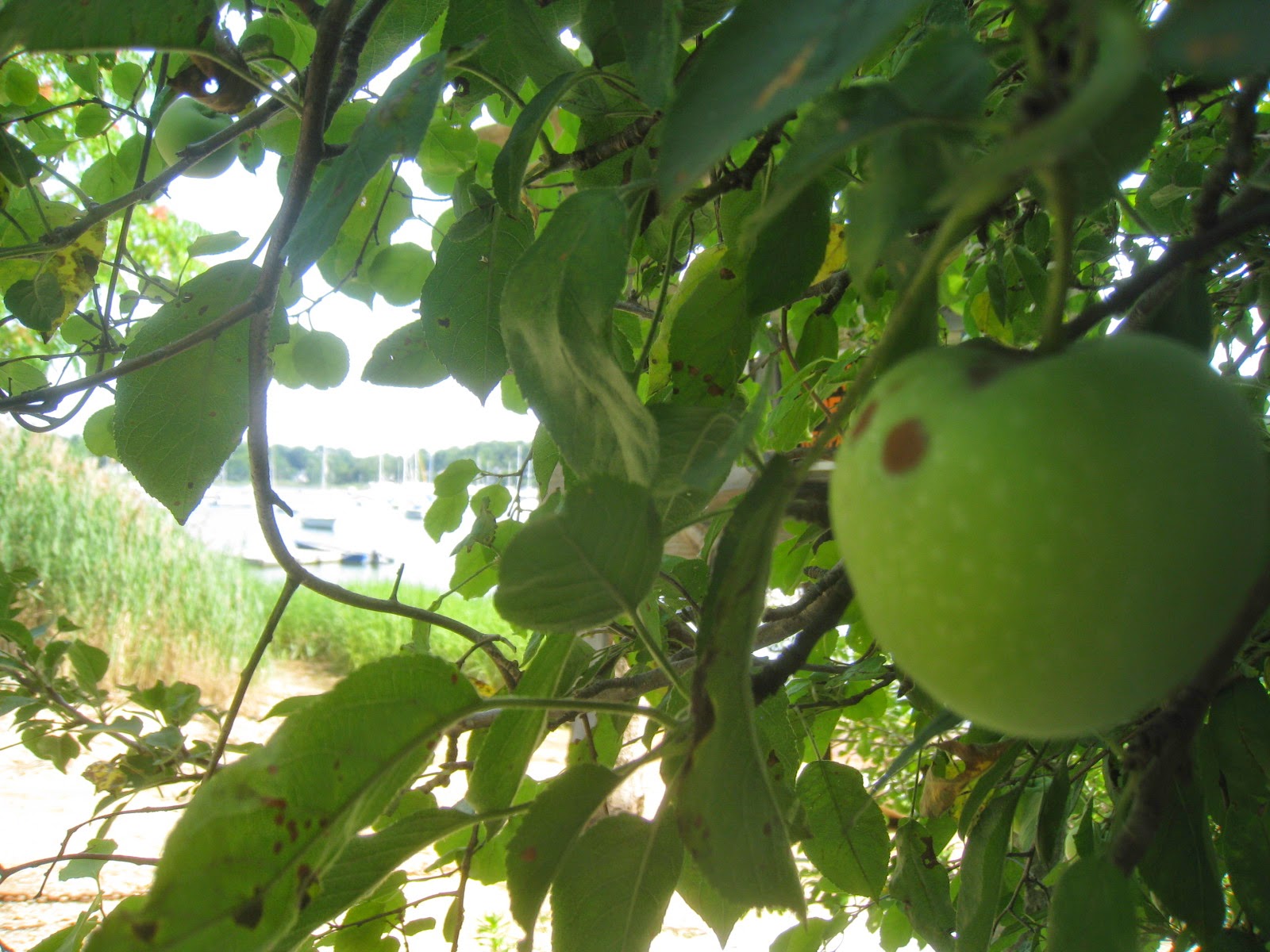 I’ve walked over here every week for over twenty years now, and never noticed that the tree next to the harbor produced apples. It was kind of a shock to suddenly see them hanging there. Another example of how we never fully know even what we think we know, because the world is just too intricate for us to fully comprehend.