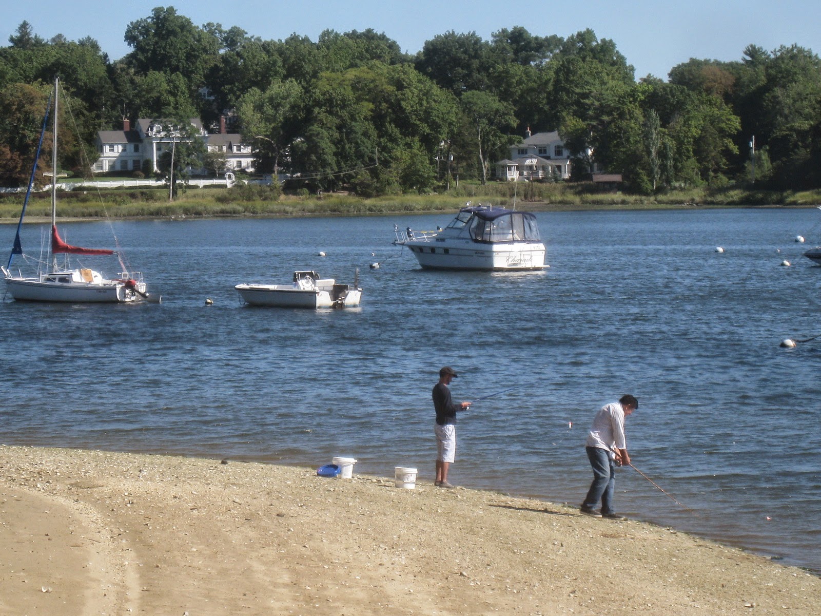 A parade of boats into the outer sound, as everyone wants a last chance to swim, and relax, have a beer, just hang out on the water. And, to be honest, it is the beginning of season for stripers and bluefish, although I doubt many of these are seeking prey except as an excuse. In our culture, it is always important to be seen as doing something _ even fishing _ instead of just goofing off and loafing and so on. Although to the untrained eye, all those may look pretty much the same.