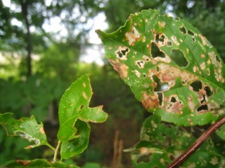 A leaf that has seen better days _ but no matter, no need to repair it now, full replacement is on the way in eight months or so. These vines participated in the throw-away culture long before there was such a thing. And how often do we ever look at the stories such holes and edges tell, except to occasionally react in horror if the victim happens to be a favorite cultivated plant?