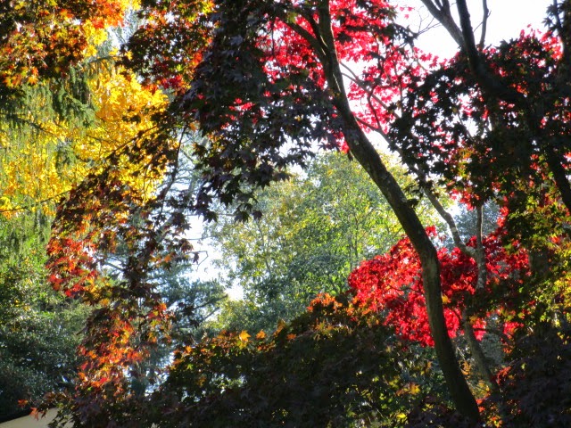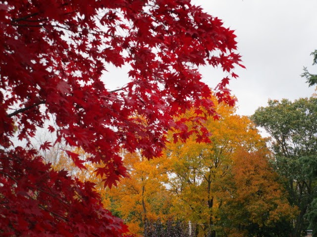 The weekend storm ripped many of the most colorful leaves to the ground, the rest are rapidly fading into various shades of browned russet and gold. But there are still patches of brilliance, abstract masterpieces no matter where we look if we just take the time. Of course, no photograph can do justice to what we can actually see.