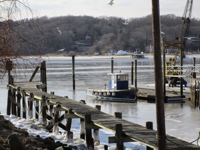 A dock in Northport village could be Maine, gulls and all. Northport is known to be picturesque, but many of the commercial photographs concentrate on summer evenings. The iced harbor hosts a wind that bites to the bone and sucks heat out no matter how warmly dressed you are.