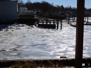 This bay into Lloyd Neck lies beyond the harbor inlet, and the waters out here are slightly more frigid and unpolluted. A freeze can almost resemble “the good old days” when everything _ even Long Island Sound itself _ would occasionally ice over in the more normally harsh winters.