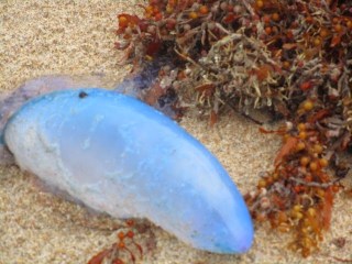 Portuguese Man o’War is as odd as its name. I thought at first it was all jelly, but careful poking shows it is a tough balloon. Reading indicates that not only is it venomous, but more startling it is not even a true multicelled organism. More like a beehive colony of single cells, which somehow support the shape, the air inside, and the venomous tentacles that swimmers (and beachcombers) should avoid.