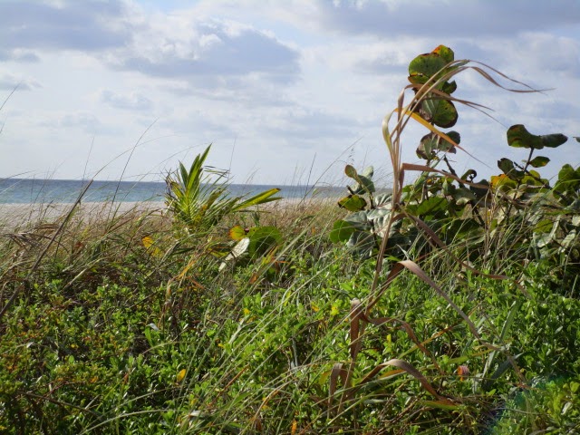 Even here along a shoreline that looks more built up with skyscrapers than Manhattan, a small strip of wild dune is left between the buildings and the beach. Maybe it is aesthetic _ there is certainly not enough to protect from storms. Palm trees, grasses, beach peas, and a surprising number of other species eke out a living as constricted as that of the humans roaming the small condo cubicles above them.