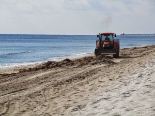 Although Sisyphus today has a big machine to help, his task remains unending and essentially undoable. This guy tries to hide the residue of every high tide under a blanket of sand, while incidentally picking up the worst of the trash that also floats ashore. No matter how successful he may be, the whole thing happens again in twelve hours. Forever.