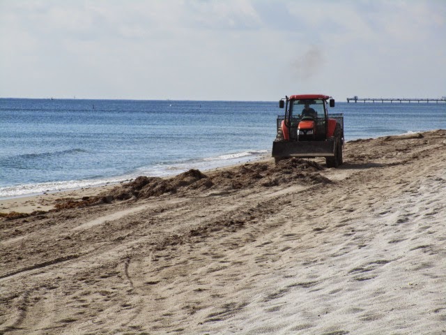 Although Sisyphus today has a big machine to help, his task remains unending and essentially undoable. This guy tries to hide the residue of every high tide under a blanket of sand, while incidentally picking up the worst of the trash that also floats ashore. No matter how successful he may be, the whole thing happens again in twelve hours. Forever.