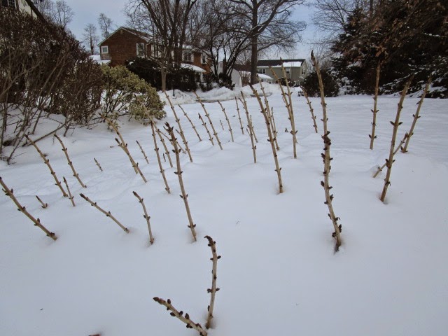 It’s a certainty these hydrangeas will not bloom again this year _ the buds have been blasted once again. Now there is simply the question of whether the roots survived or not. The same with the fig trees and many other ornamentals and invasives _ plant and animal. The coldest month in almost a hundred years will cause some problems in what has been a long and slow extension of growing zone over the decades.