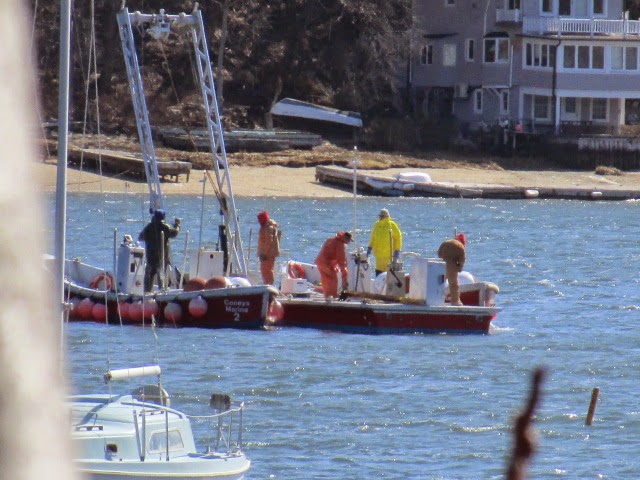 - Twenty-odd degrees plus harsh wind _ no matter _ the calendar declares the buoys must go out. From now on weekend mariners want to believe they could take their boats for a spin anytime they get the notion _ even though they will not really ever have the time nor inclination until nearly July. A lot of maritime work must be done in nasty conditions, at least these guys will be able to motor over to Halesite and get some coffee and hot chocolate.