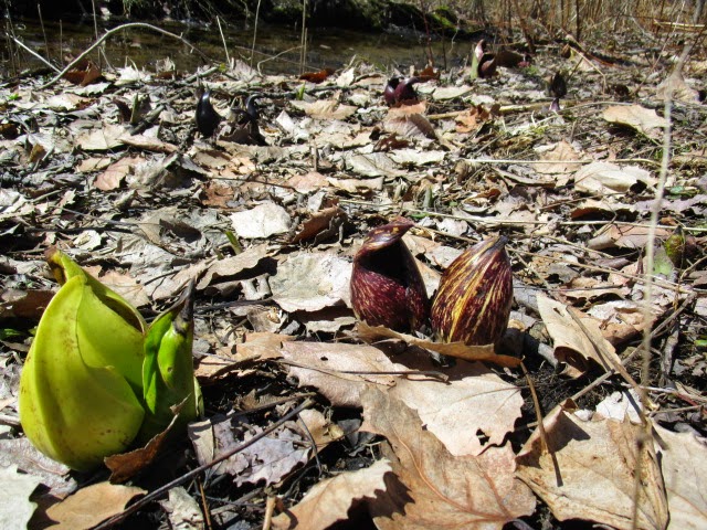 - In a forlorn marsh formed by a tiny brook that is more of a drainage ditch, in a forgotten back woodlot at Mill Dam Park, this reliable grouping of skunk cabbage is always fully in bloom by now. Being endothermic (generating its own heat) its flowers are only slightly affected by yearly variations in snow and cold. At least enough early insects are around to have guaranteed its survival _ and it is almost everywhere, particularly in places where people do not even want to walk. An overlooked native wildflower holding out against human encroachment on own terms.
