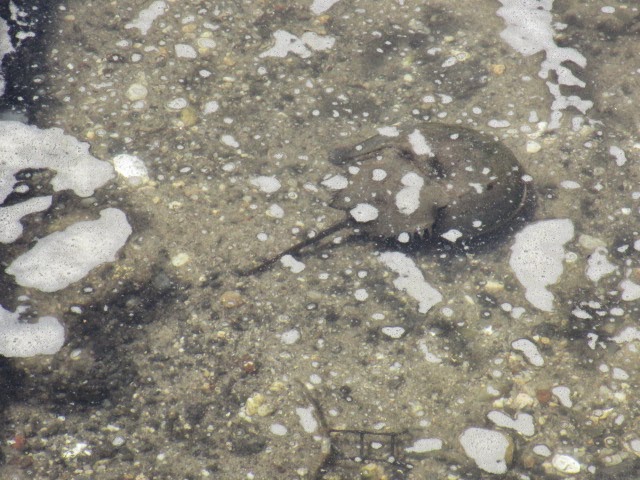 - Waterfowl have had chicks, fish have spawned, and now it seems to be time for the horseshoe crabs to mate. This one is slowly circumnavigating a restricted dock area in Northport in motions resembling a drunken Roomba vacuum cleaner. Perhaps a little confused by looking for a beach area where there is none. Usually, eggs are laid into shallow depressions dug along the high tide level. These are everywhere, numerous, an apparently inexhaustible resource even though now harvested for various purposes.
