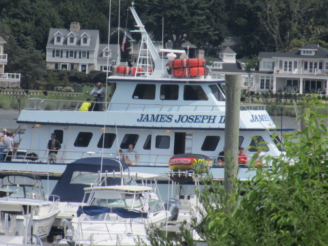 • The James Joseph goes out several times a day from the town dock, through the inlet and sets up just offshore on the Sound.  Although it can be chartered, it’s mostly just families going out occasionally to fish for something a decent size.  They must be successful, for the boat is usually followed by a huge flock of seagulls feasting on the thrown overboard remains of the cleaned fish.