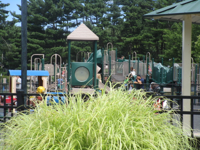 • Small children need active play, no matter what time of year.  Even in high heat of summer, park playgrounds like this one at Hecksher are wonderful spots.  Sometimes in the overwhelming affluence of this culture, parents try to recreate everything in their backyard.  That can be a losing proposition, since various parks offer variety of scenery, and ranges of equipment to keep kids from being quickly bored.  Plus toddlers grow so fast that often back-yard construction is out of their age group within months.