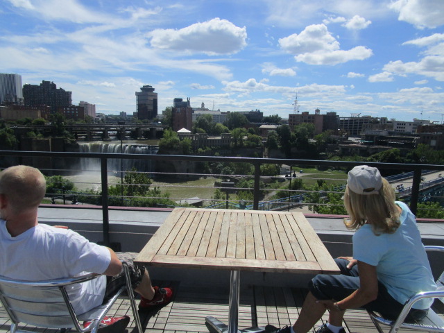 - It’s a pleasant place to spend afternoon August hours, plastic cups of Genesee beer in hand, on the roof deck, listening to a live band playing Rolling Stones classics. A pedestrian footbridge over the gorge carries tour groups, couples wanting pictures, and on this particular Sunday, a person marching with a Puerto Rican flag from the nearby festival.
