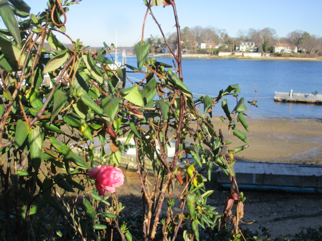 • Last year, rosebuds had been blasted black by mid-October, permanent snow-cover settled in shortly thereafter, and by now everyone was fervently awaiting a January thaw that never arrived.  In contrast, Huntington Harbor’s first hard freeze is predicted in the next few days.  Roses, weeds, birds and squirrels take it in stride.  People worry.