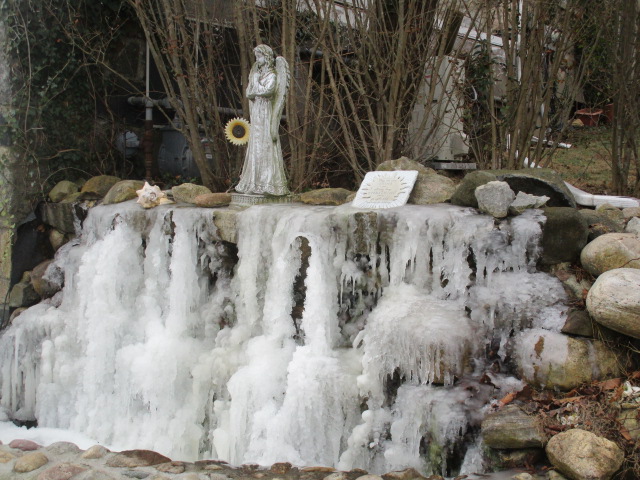 We turn back as the birds suddenly scatter, frightened away by the neighbor’s prowling old yellow cat, which seems not to notice the cold at all.