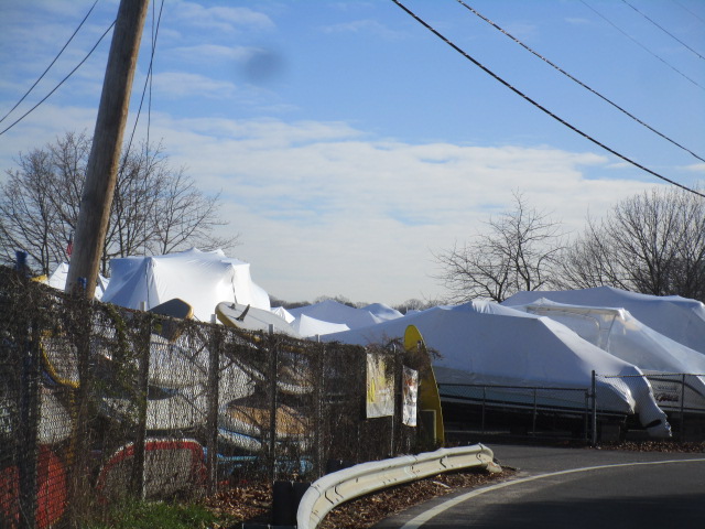 • In spite of modern materials and paints, marine life such as barnacles still manages to cling to or thrive on submerged hulls, cutting efficiency.  High tech engines need service and recalibration.  Birds and dirt manage to coat exposed surfaces.  An expensive annual off-season ritual involves hauling craft out of water, power washing everything, wrapping tightly in shrink wrap, and stashing them somewhere safe until spring.  This reduces shoreline land, but waterfowl probably approve more open water and flyways.