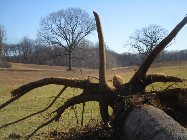 - By moonlight, this scene would be wild and haunting enough for the most romantic poet. Another tree toppled by heavy snow and fierce wind, leaving only a question as to why those others survived the midnight onslaught. Dreary, bare, browned downs of soggy low grass and stiff reed stubble. Not even enough forage for flocks of geese, abundant everywhere else.