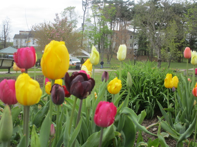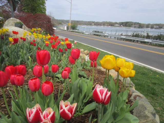 - Today is the Huntington Harbor festival, and the tulips have cooperated. Booths and music and various events have been planned for the extravaganza. Unfortunately, this picture was taken several days before. Right now is one of the most miserable mornings we have had in a while _ very below normal temperature, nasty drizzling showers, raw wind sucking away warmth, and a grey cast to every color.