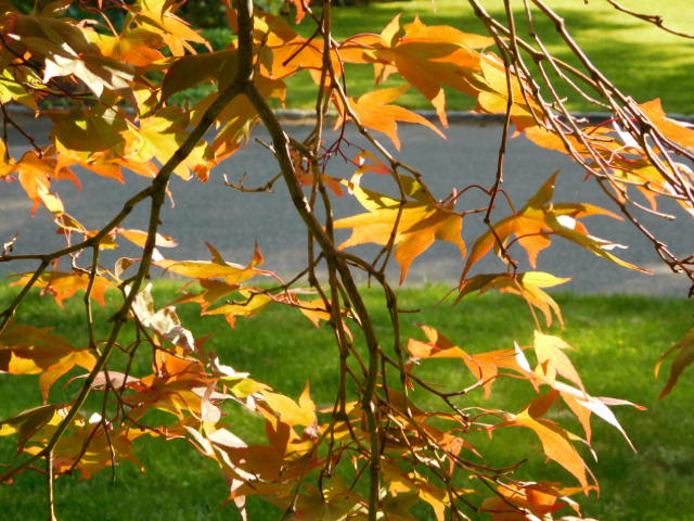- Branch of Japanese maple glows crisply in fresh morning sun, as the desk calendars would put it. This small example contains almost uncountable individual leafs, each working to provide food to the rest of the organism. Yet were it torn by wind or pruning, the tree would recover, because there are so many more. Imagine the not-quite-infinite number in Huntington, Long Island, North America, or the world! Yet in some ways the whole assemblage is as fragile as this branch itself.