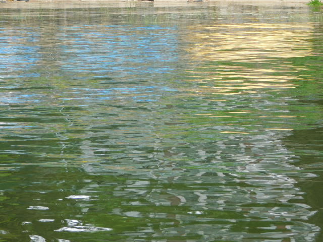 Waves drift in endless lines, encountering other disturbances, bouncing and reflecting and picking up glints of sunlight. I try to make sense of it all, then fall into a reverie. “Hi Wayne,” brings me back to my body here on the dock. Oh, our neighbors Joe and Linda.