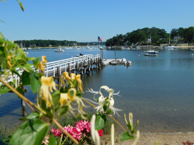 Joan and I are under our umbrella in bathing suits at West Neck Beach a day after solstice.  A surprisingly large weekday crowd is enjoying the afternoon.
