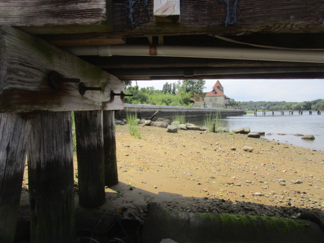 Joan waves another fly into the onshore wind, as the muffled sound of a distant speedboat blends with thunder from an overhead low jet heading for landing thirty miles away. Waves sparkle below tree-greened horizons as families splash in bathtub-warm mid-tide.