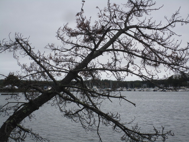 “But life goes on. Look _ here comes the sun now.” A few leaves have turned, so there are bright orange and yellow sparkles here and there near the tips of the crowns.