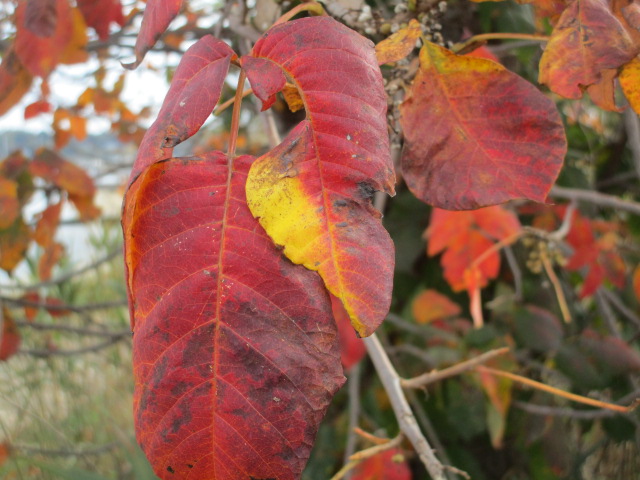 This time of year, I am easily mesmerized by one branch or twig surrounded by its colored ensemble. Or, especially, by a single fruit, one brilliant leaf. I am paused in reverie staring at a particularly lovely specimen when John passes by and calls. “You know that’s poison ivy. Look but don’t touch!”