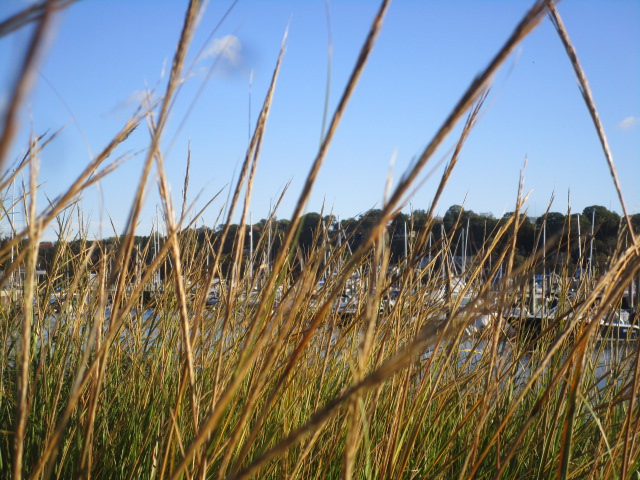 “Well, OK. But mostly, I want to take advantage of the micro-views of the world. The pretty leaf right here, the flaming tree over there,” I gesture across the harbor, “no need to travel to far away destinations to take advantage of what is being offered.”