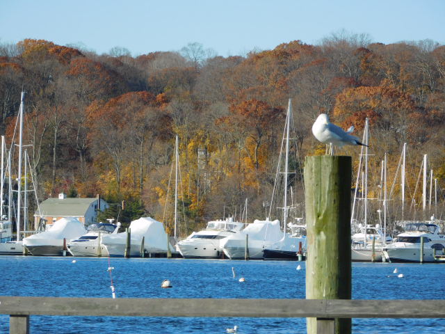 Pinny Oak stretches her limbs away from the northern blast and yawns mightily. Leaves cascade away, leaving her three-quarters undressed.