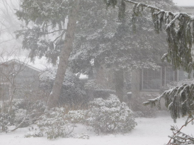 • No birds at the feeder in the back yard this morning.  Not many for some time.  A hawk or an owl or both have discovered that birds gathered at a convenient feeding spot are also easy prey.  In spite of these swooping raptors crashing into our windows once in a while, they have managed to succeed enough to chase all the feathered guests away.  That makes for a less lively view from the window, although it has also cut down considerably on the cost of feed.