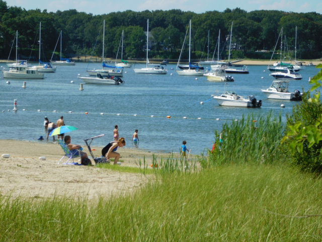 - Each year, the Beachcroft community celebrates the fourth of July on its private beach. It usually resembles a scene from the fifties, with children swimming and splashing, a few organized games with prizes, residents discussing life over beer and soda while hamburgers, hot dogs, and Italian sausage sizzle on the charcoal grill. Numerous platters of various foods have been provided by each family, there are red white and blue tablecloths and bunting on the dock as the large American flag waves in a breeze cutting the hot sun.