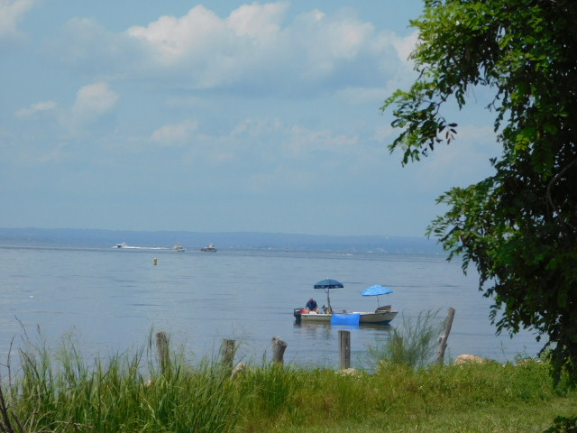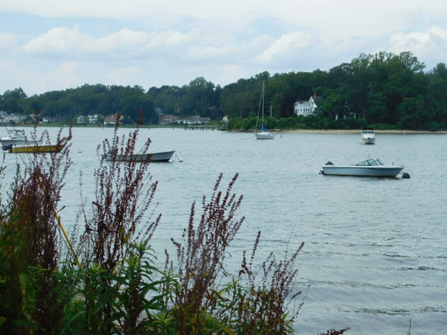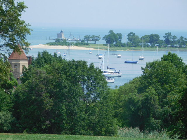 Humidity dims distance, as usual heat clouds pile up along Long Island Sound over the far shore.