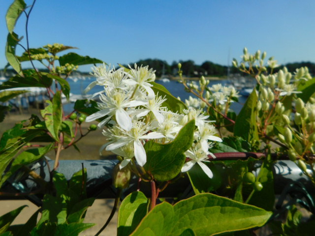 Silver Lace Vine begins to shroud fences and neglected shrubs with a blanket of delicate white blossoms.