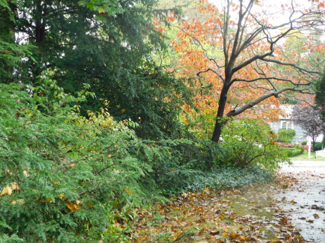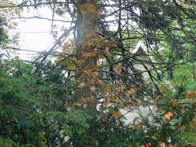 Last leaves on the vines climbing evergreens add their subtle fall colors to the mix.