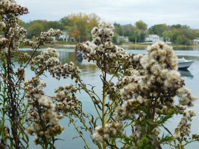 Goldenrod in its final stage graces the waterfront with fluff and spikes.