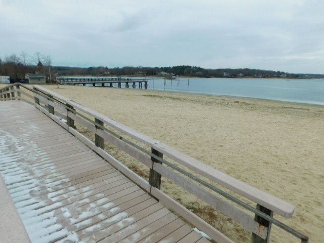 The beach is in full winter mode now, ice on deck, people stopping by for a few minutes at most.