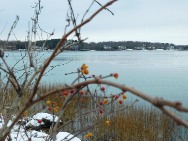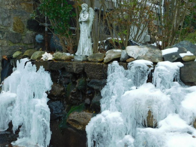 A tiny local grotto along the shoreline road frozen into interesting patterns as cold set in.